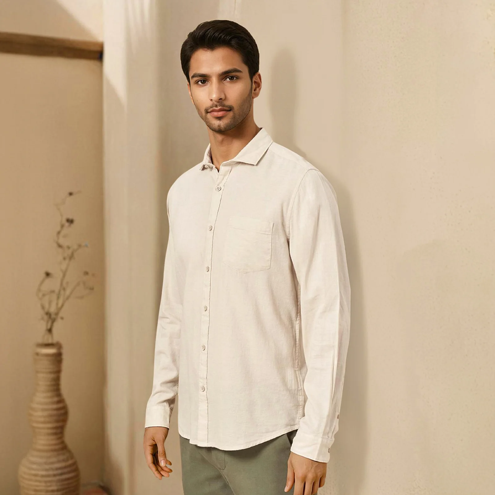 Elevate your wardrobe with our linen-cotton casual shirt and experience the perfect balance of comfort and style.