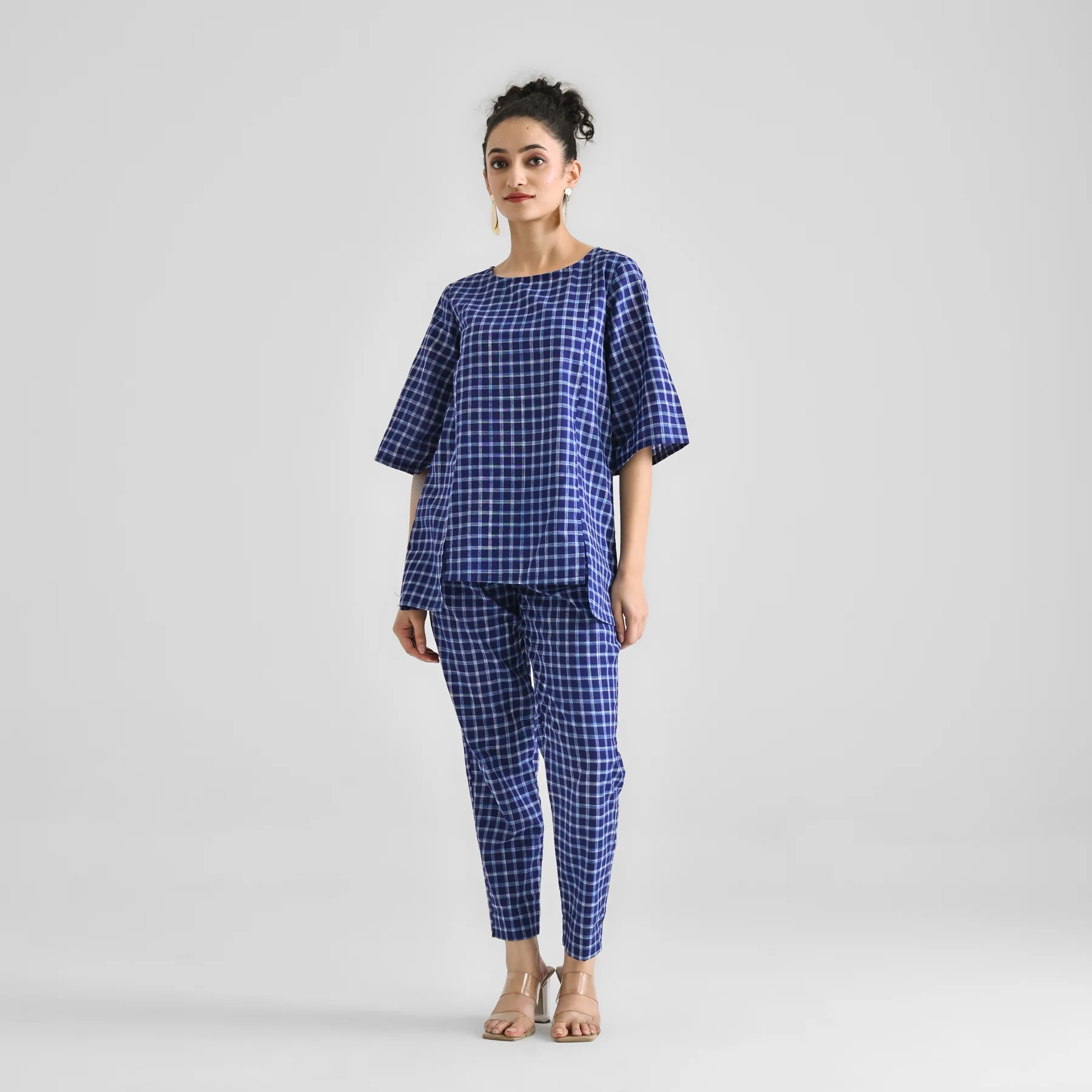 Blue Woven Cotton Co-ord Set with Slit Detail