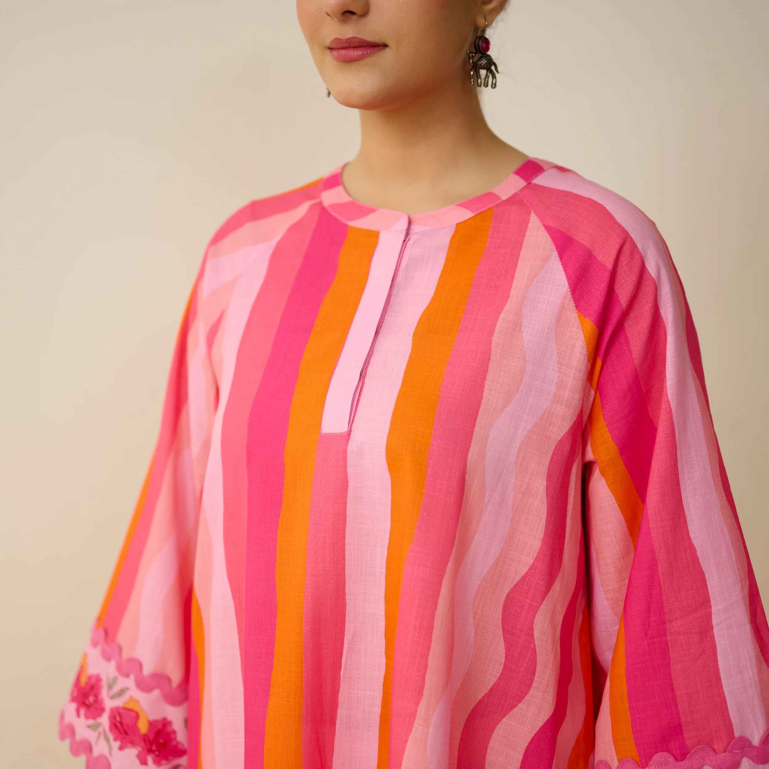 Bohemian Cotton Slub Breeze Kurta - Hues of Pink