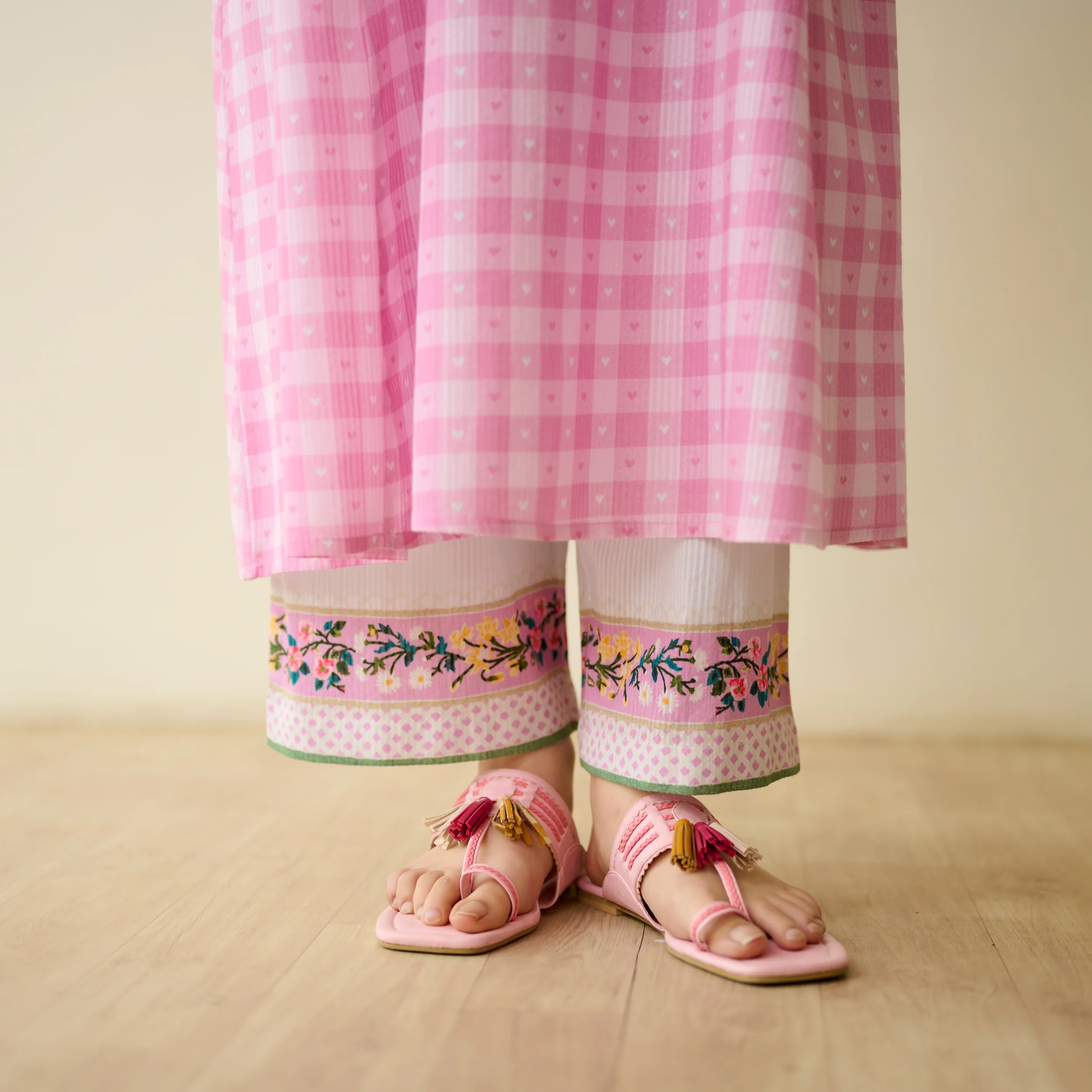 Countryside Seersucker Cotton Kurta Set - Baby Pink
