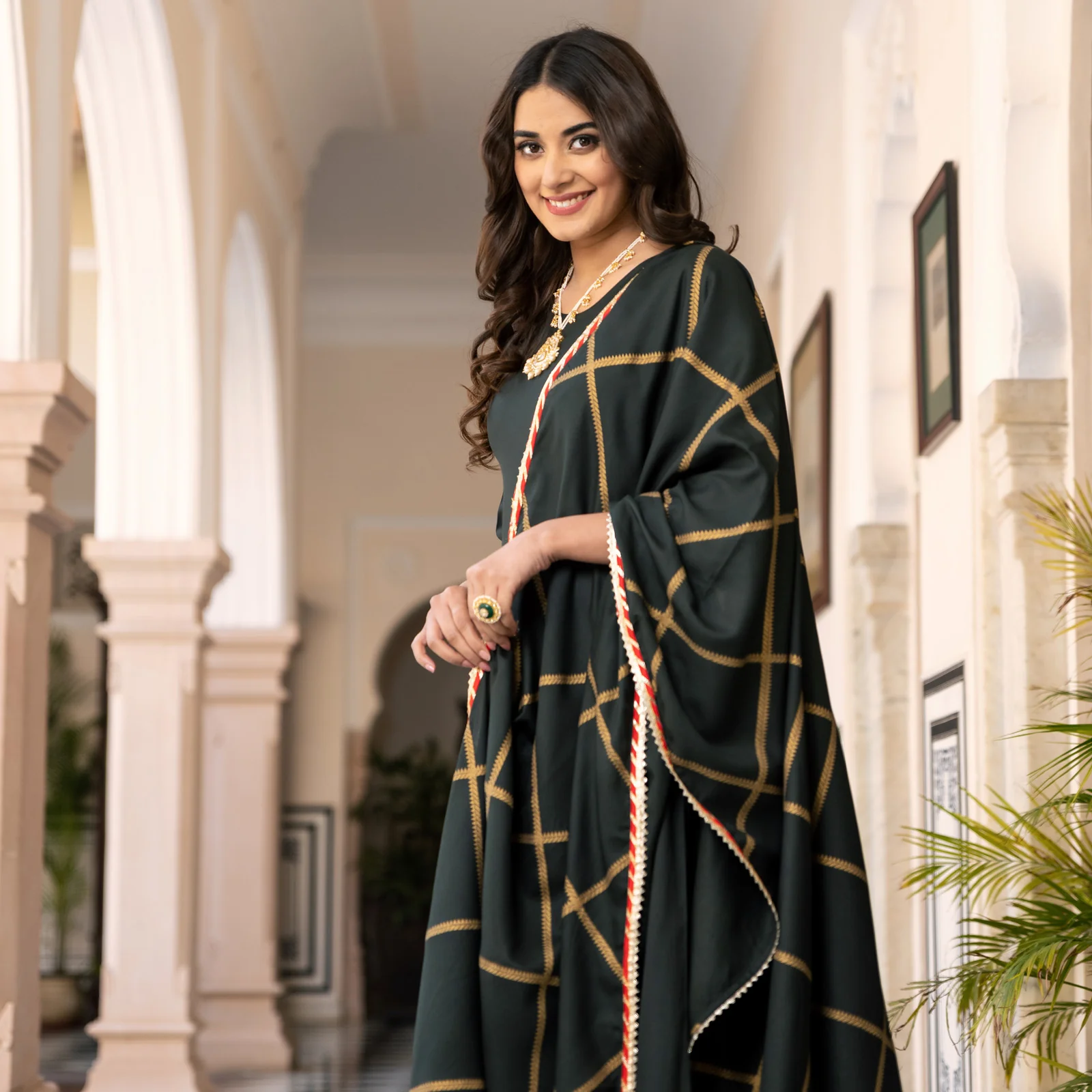 Emerald Green Long Kurta Dress with Gota Detailed Dupatta