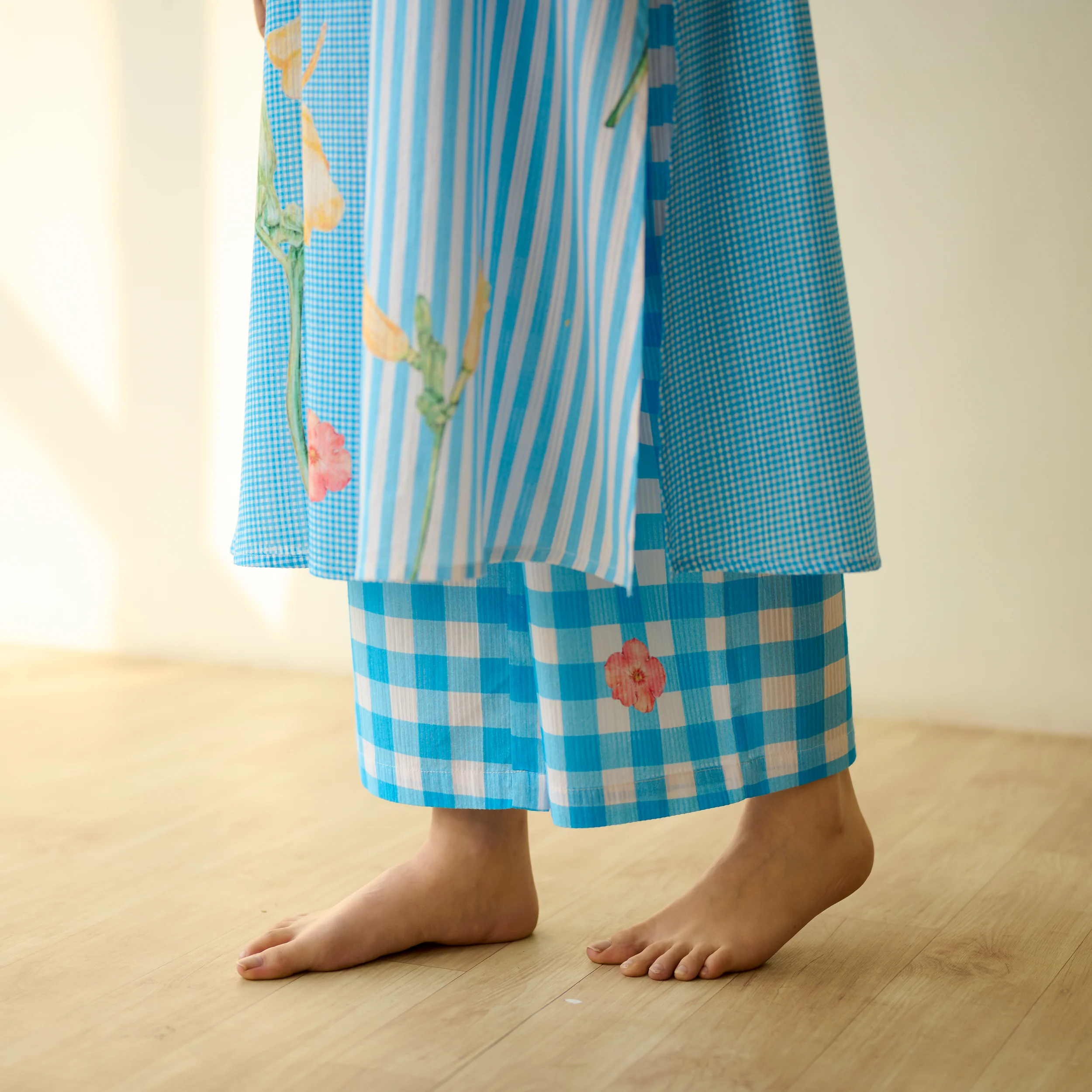 The Handpicked Floral Kurta Set is a charming ensemble combining comfort, style, and delicate detailing. Crafted in breathable seer sucker fabric, it blends a feminine floral print with a contemporary silhouette for effortless everyday elegance.