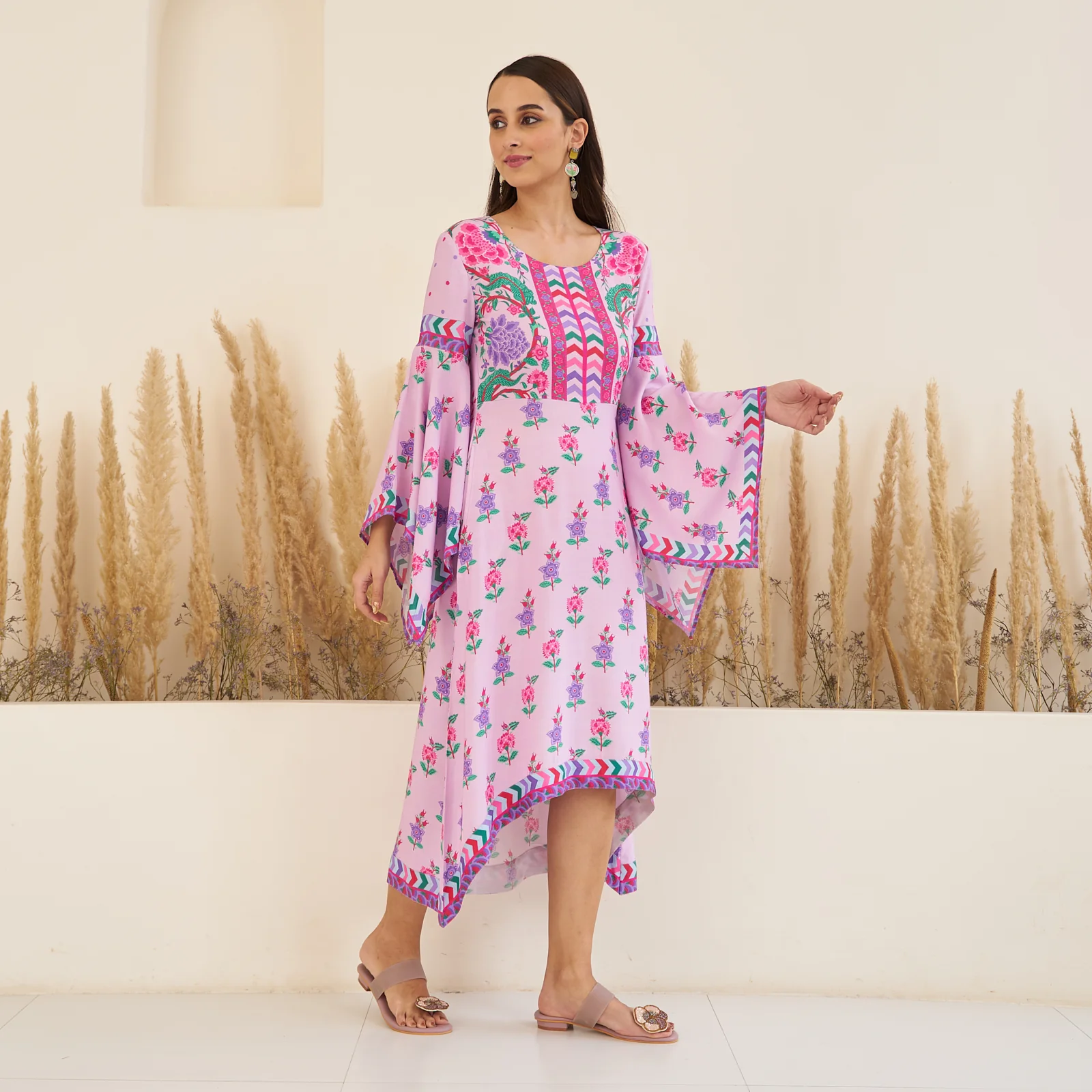 Lavender High Low Gathered Dress with Handkerchief Sleeves