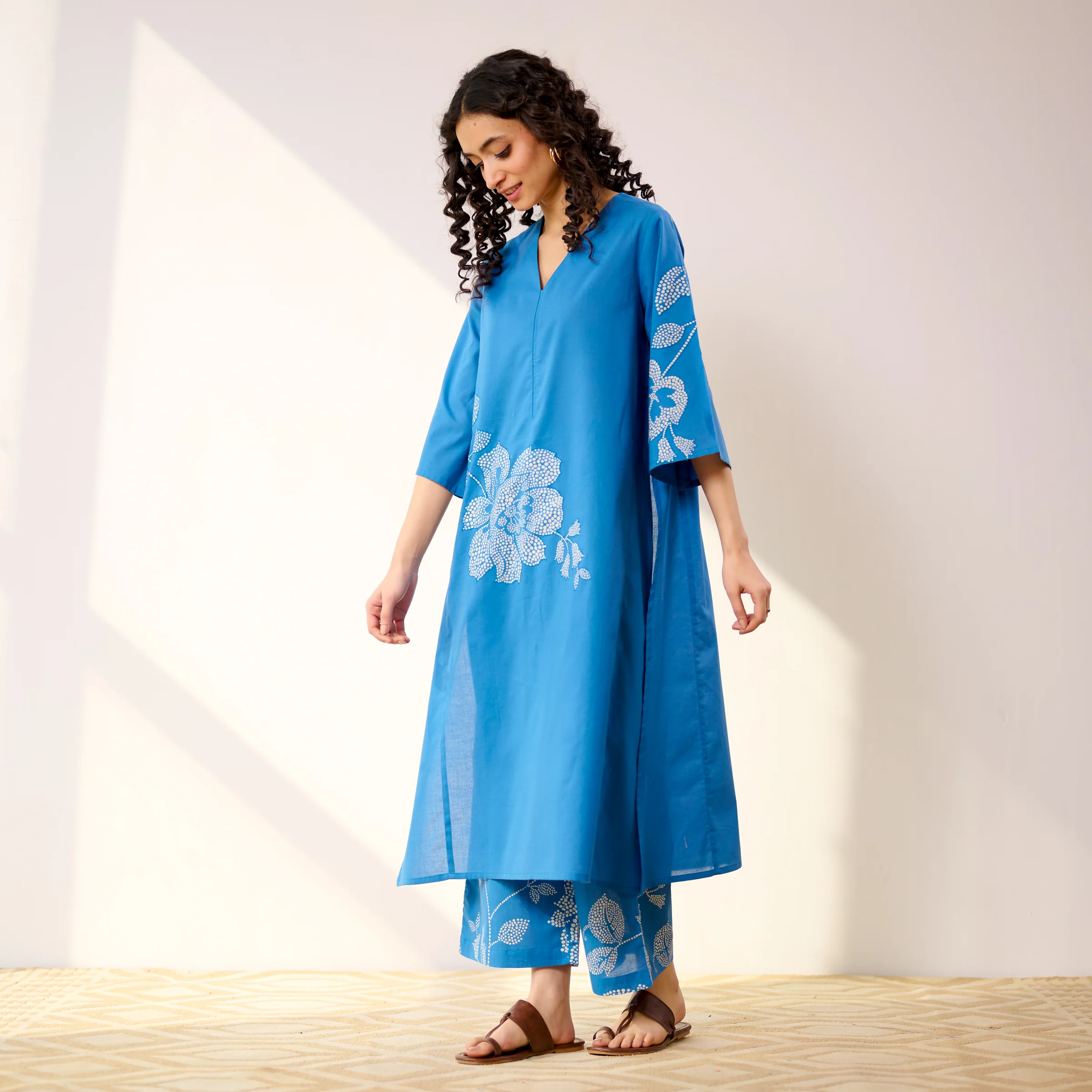 Meadow Patchwork Cotton Kurta Set - Electric Blue