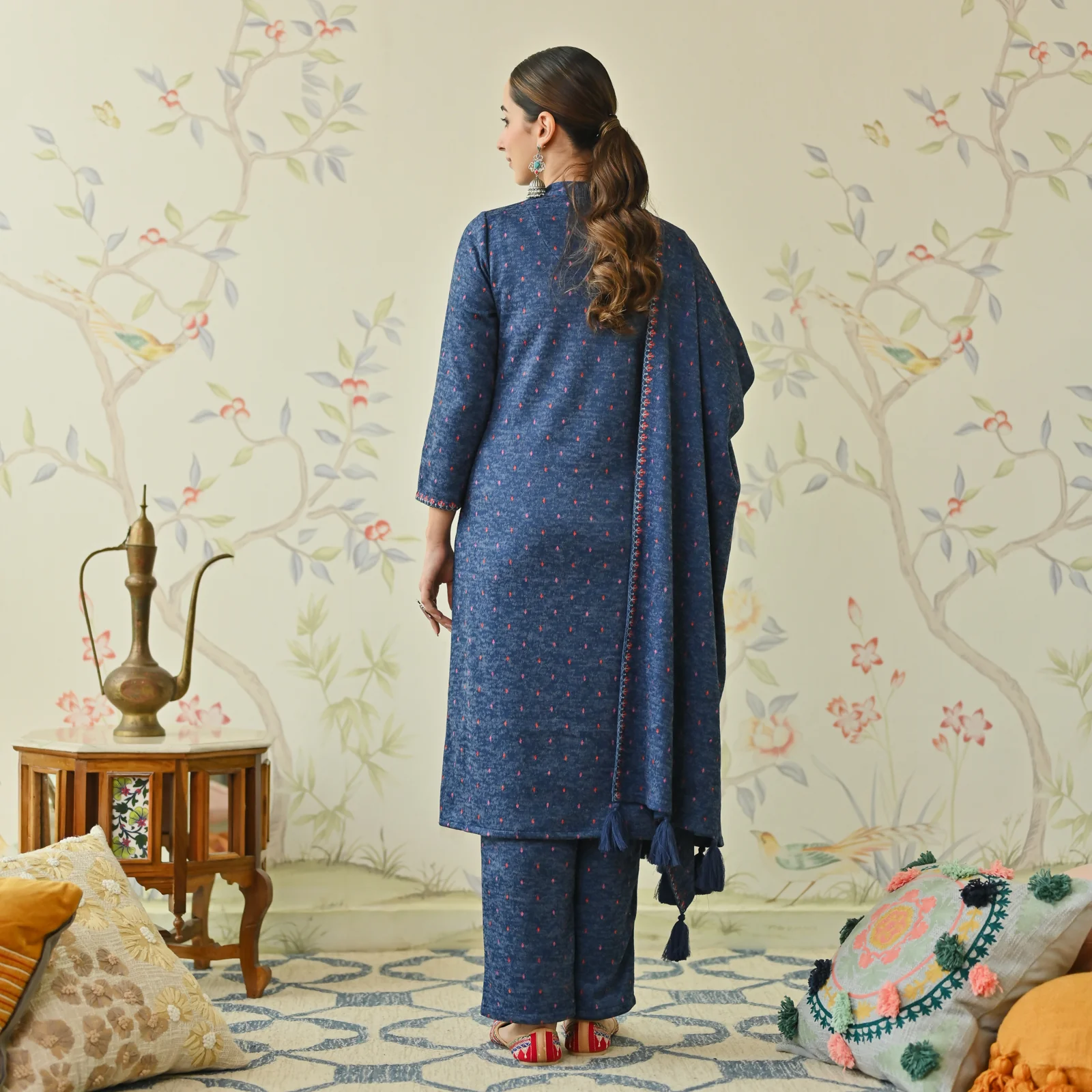 Navy Blue Embroidered Woollen Kurta