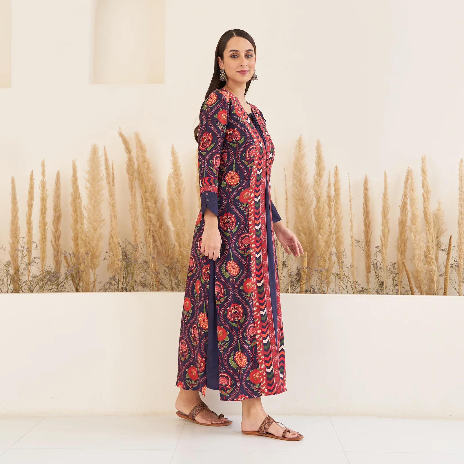 -70%Navy Blue Side Slit Dress with Long Shrug—