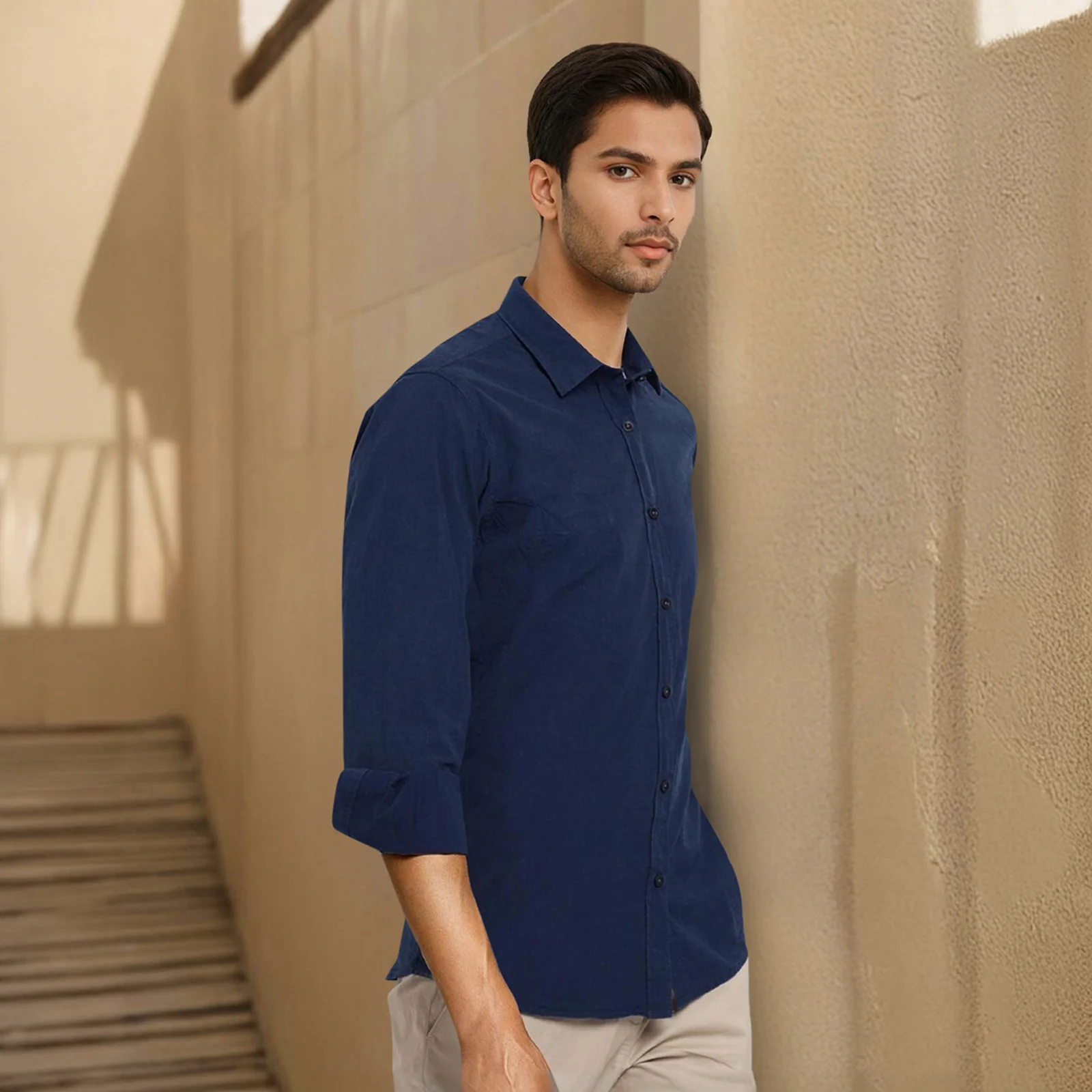 Elevate your wardrobe with our linen-cotton casual shirt and experience the perfect balance of comfort and style.