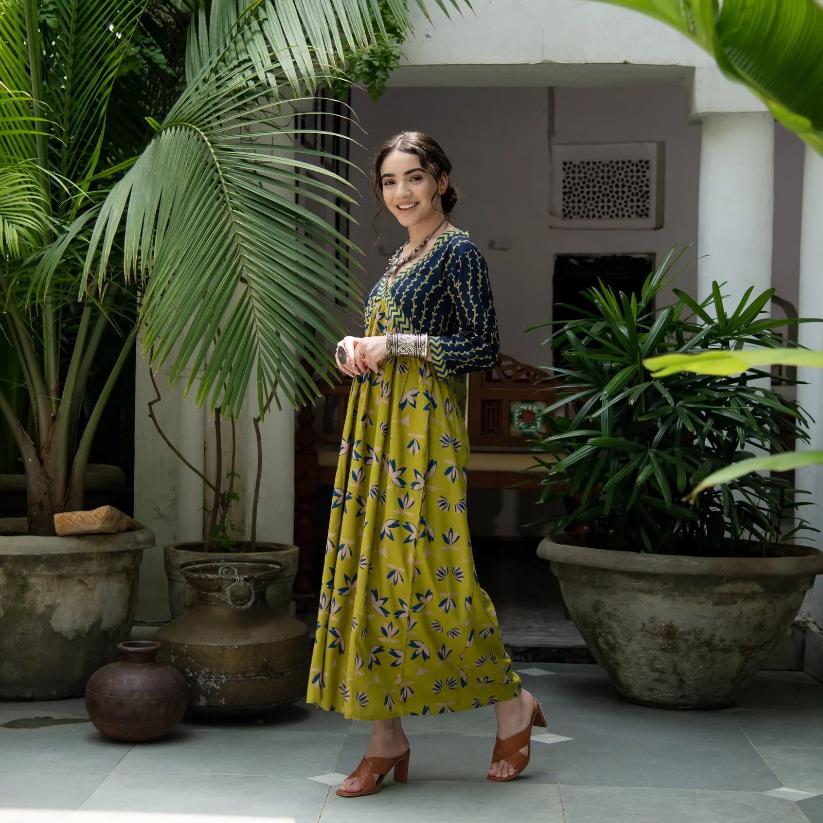 Olive & Blue V Neck Alia Cut Lotus Dress