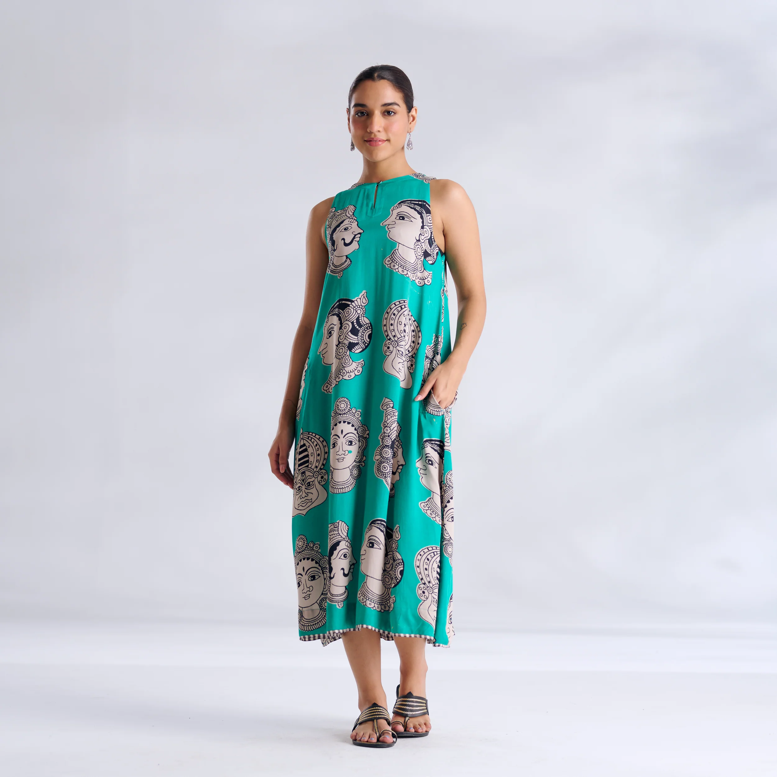 Roopika Modal Satin Dress - Turquoise