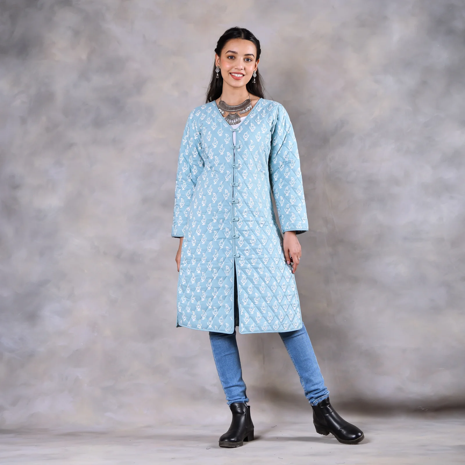 Snowdrop Powder Blue Reversible Quilted Jacket