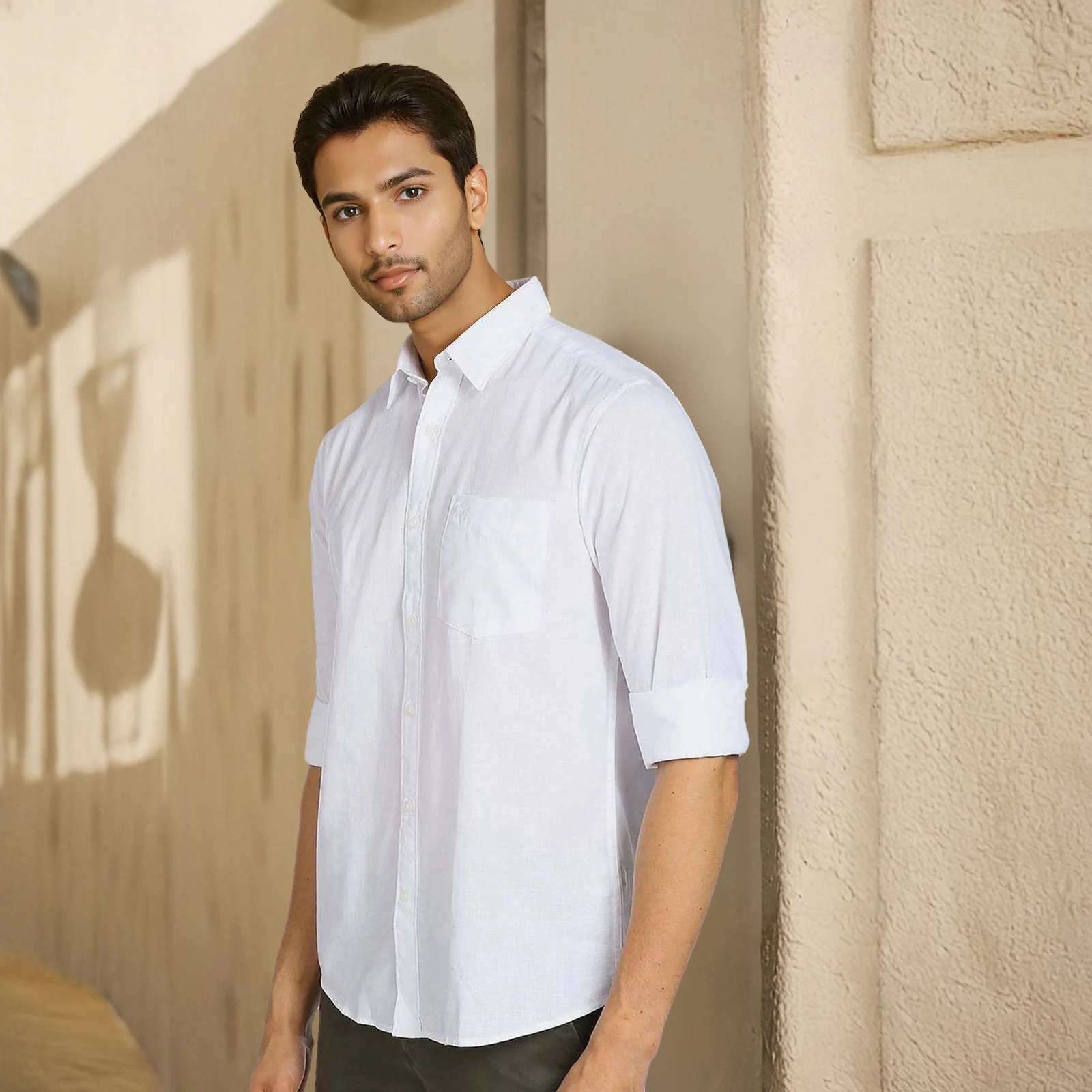 Elevate your wardrobe with our linen-cotton casual shirt and experience the perfect balance of comfort and style.